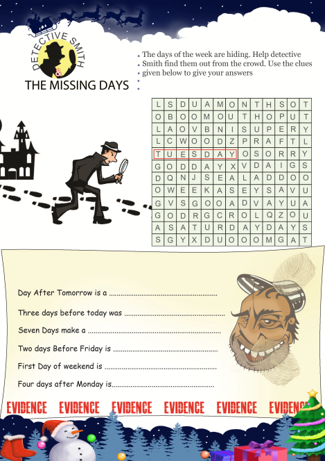Detective Smith is after a thief. The thief has left some clues after a big robbery. These clues are in the form of some week days. Help the detective in finding those clues from the bag of letters.