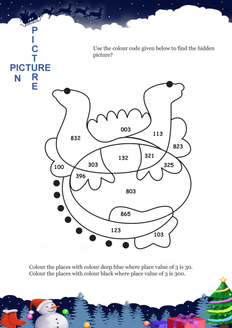 I am a semi-aquatic animal. I dive under water to eat fish and other marine creatures though I am scared of whales and sharks. Colour me by my place value code and find out who I am?