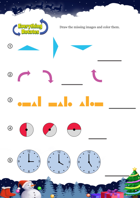 The earth is round. The moon is round. The earth goes around the sun and the moon goes round. Everything here also seems be going round and round. Can you guess the missing shape, draw it and color it?