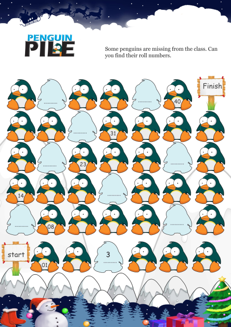 Once upon a time during a school trip organized by Penguin School of Antarctica some mischievous Penguins hid under teachers' seats. The class teacher immediately noticed the missing penguins. She made everybody stand roll no. wise to find out the naughty ones who were missing.