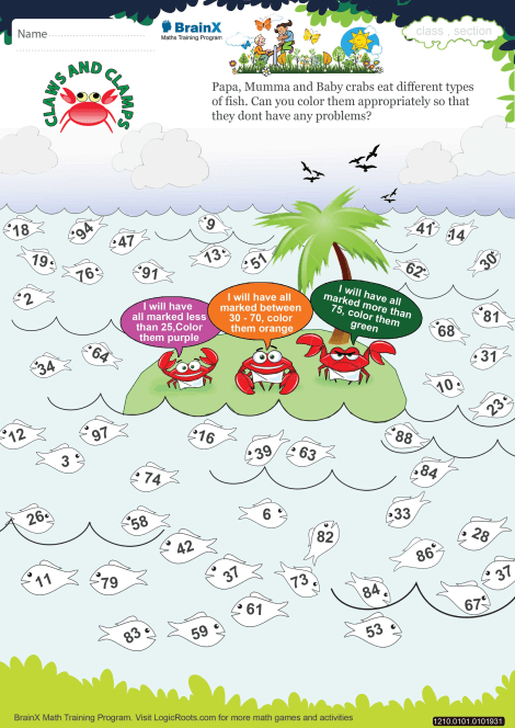 In the king’s paradise there is a pond where a crab family lives. As they belong to the royal family so they also have the royal taste. Color the fish according to the color choices of the papa, mummy and baby crab so that they can have their dinner.