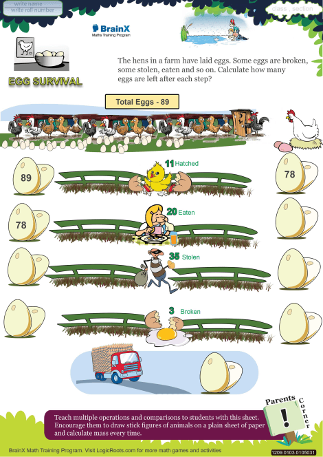 One day 89 eggs were laid by hens in a farm. Some eggs were so mature that they hatched on the same day. Some were eaten by the owner in lunch. Meanwhile some eggs were found broken and stolen. Now calculate how many eggs are left with the owner?