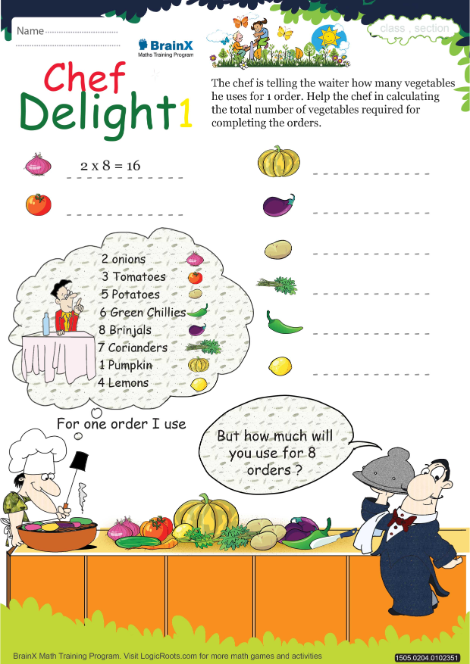 In a hotel the head chef is telling the waiter how many vegetables he uses for 1 order. Now the waiter asked him for 8 orders. Help him calculate the number of vegetables.