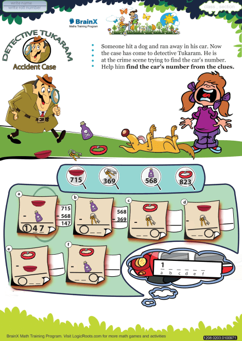 Someone hit Jolly’s dog and ran away in the car. She has now called Detective Tukaram to find the culprit. Detective is inspecting the crime scene with his huge magnifying glass and has found some clues. These clues can give you the number of the car. Can you find it?