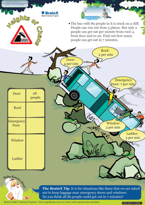 A drilling operation was carried in the city among the people. It was to spread awareness among them that 'How to get safe from a bus when it stuck in a cliff'. What preventive measures we should take etc. Government authorities brought a dummy bus and calculated how many persons can be brought safe from bus after 7 min from various ways. Help them to complete the sheet.