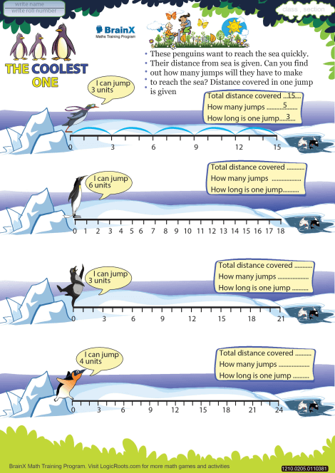 These penguins are competing against each other to get the title of 'The coolest penguin'. They are swiveling and dancing before taking the dive. Can you calculate the number of jumps for each penguin?