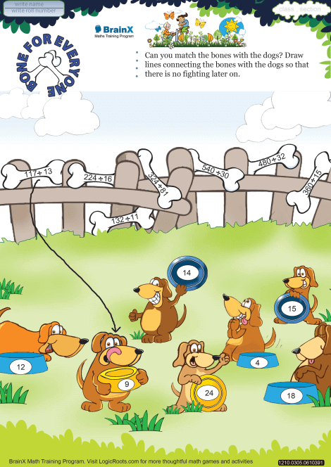The caretaker of these dogs over slept and forgot to give food to these dogs. So when he came with the bones, the dogs started barking and growling. He got so scared that he threw the bones towards the dogs from the other side of the fence. Before they all start fighting over the same bone, match the bones with the right dog.