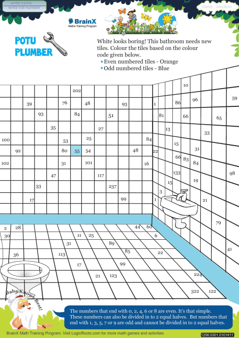 Riya and Roy have got a new bathroom made. Riya likes blue colour and Roy is fond of Orange. Their mother has allowed them to design their bathroom themselves. For the ease of the designer, they have written odd numbers where they wish to put blue tiles and even for orange. Colour and check out how their bathroom looks?