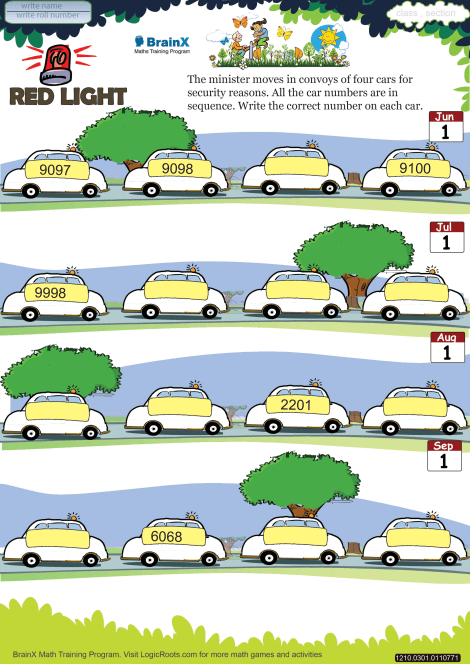 Number sequencing. Numbers up to 9,999