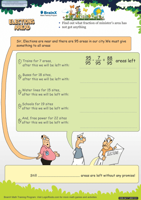 People of the city Kanpur are very disappointed about the bad roads,irregular water supply,electricity etc.One day a minister came for his propaganda.Then he promise to give something to all areas.But people does not trust him.Find out what fraction of minister`s area has got anything.