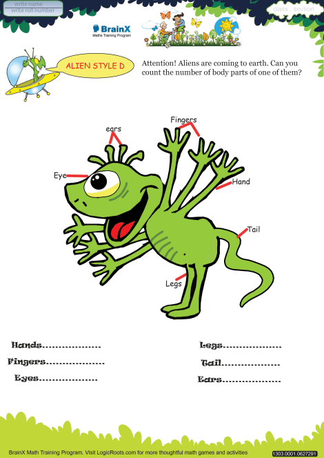A baby alien has fallen on Earth from outer space. He is very different from us. Can you count his number of eyes, hands, legs etc?