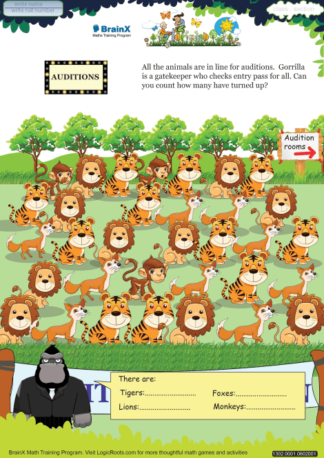 The talent show is on. Tigers, lions and foxes are all there. Can you count them all for the organizers?